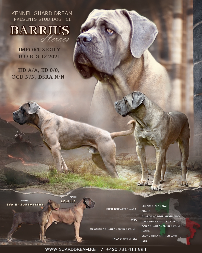 Národní vítěz, 3x BOJ, BOS, 3x BOB, výborný, velmi nadějný DNA profil, OCD negativní; EGEO de Declino di